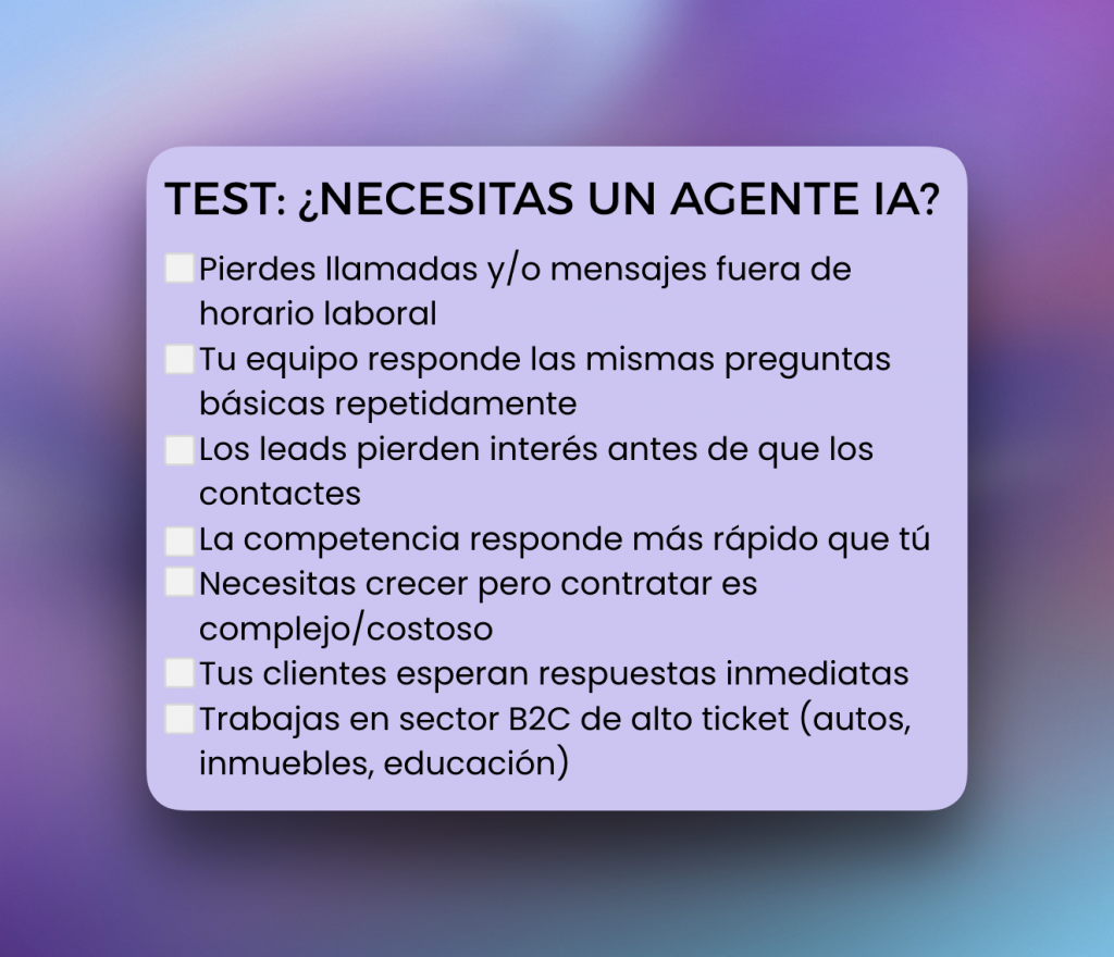 3-4 marcadas: Tu empresa se beneficiaría significativamente de un agente de IA. Es momento de evaluar opciones.