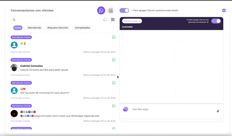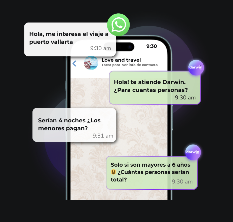 Darwin Now te permite activar tu agente IA para vender en WhatsApp en minutos, sin saber programar ni instalar nada.